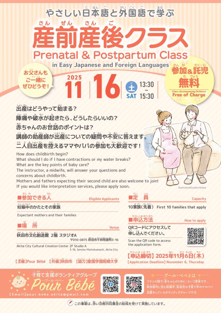 “Prenatal & Postpartum Class in Easy Japanese and Foreign Languages” will be held on November 16, Saturday.