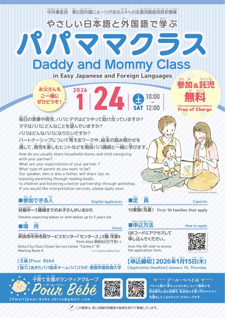 “Daddy and Mommy Class in Easy Japanese and Foreign Languages” will be held on January 24, Saturday.