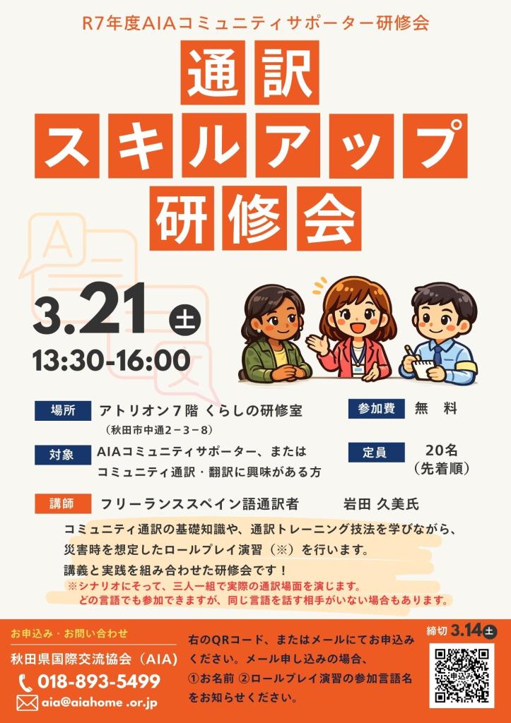 | 対象 | AIAコミュニティサポーター または コミュニティ通訳・翻訳に興味がある方(参加言語問わず) |