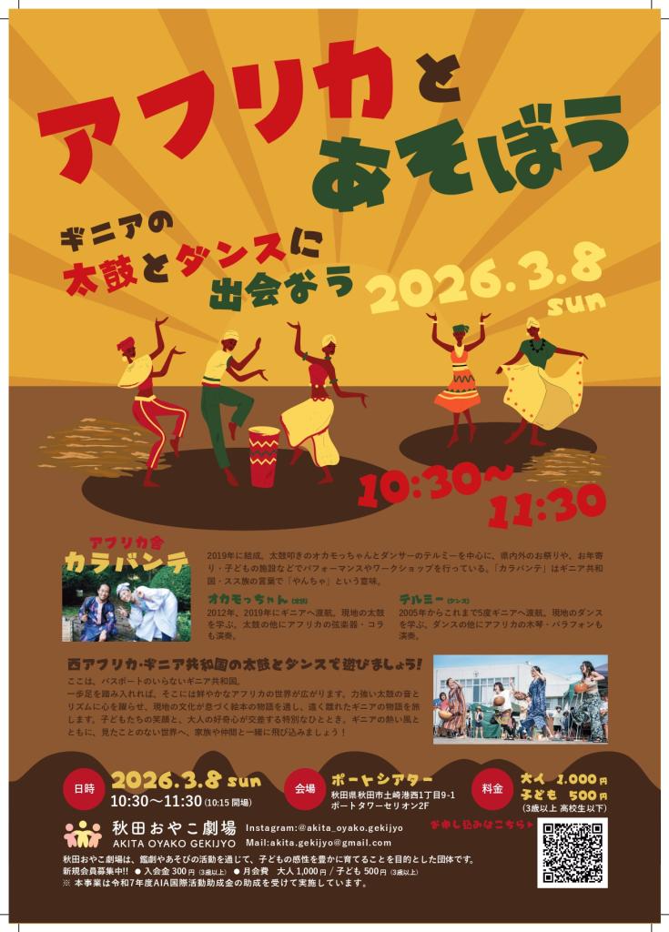 秋田おやこ劇場よりお知らせです。 ※AIA国際活動助成金活用事業