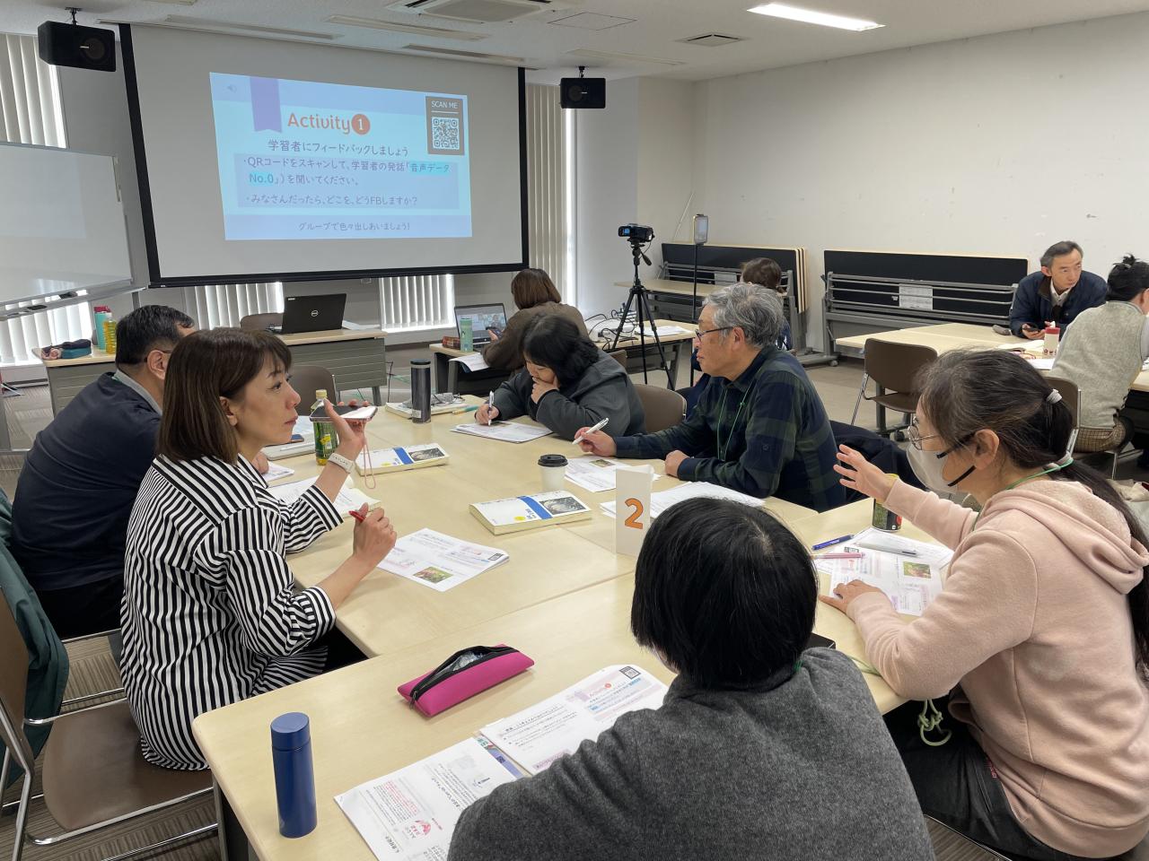 参加者の皆さんからは「新しい教授法について理解できた。やってみたい。」「学習者が自分の課題に気づき習得するためには、具体的で励ましのあるフィードバックが大切だと感じた。」